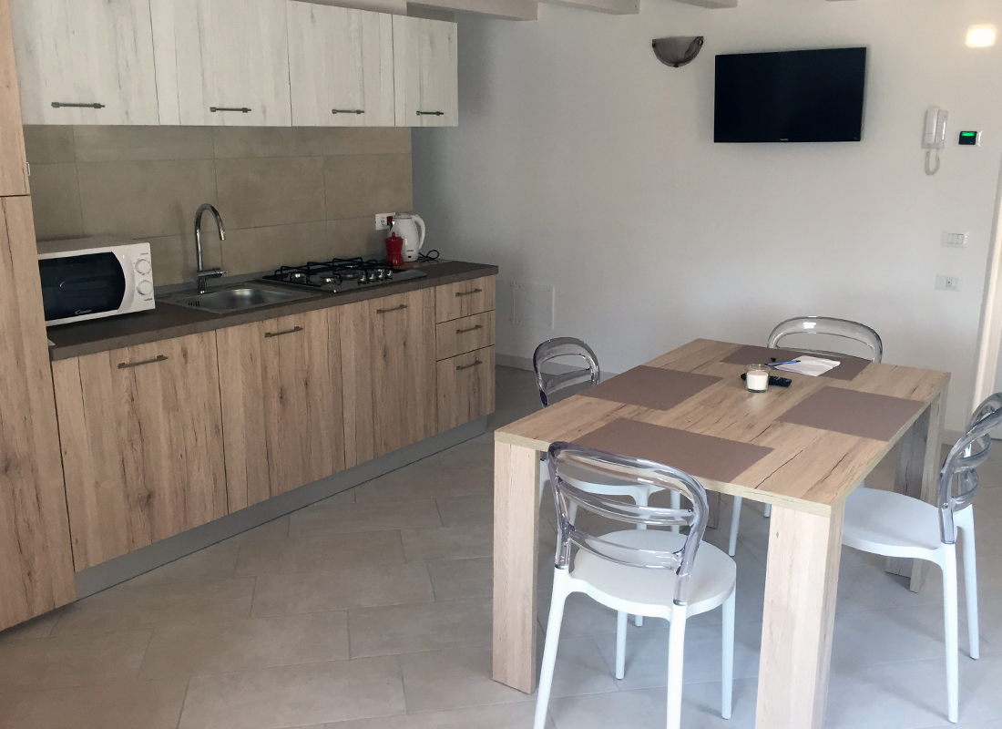 L'appartamento è composto da una camera matrimoniale, un soggiorno con divano letto per 2 persone e un bagno. Bagno privato, aria condizionata, TV a schermo piatto e frigorifero. A vostra disposizione anche un angolo cottura con fornelli. La struttura dispone di parcheggio gratuito, piscina e vista lago. La connessione WiFi è gratuita